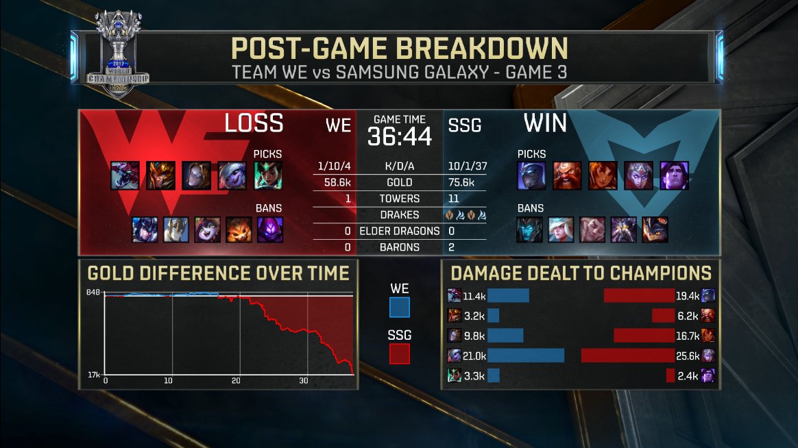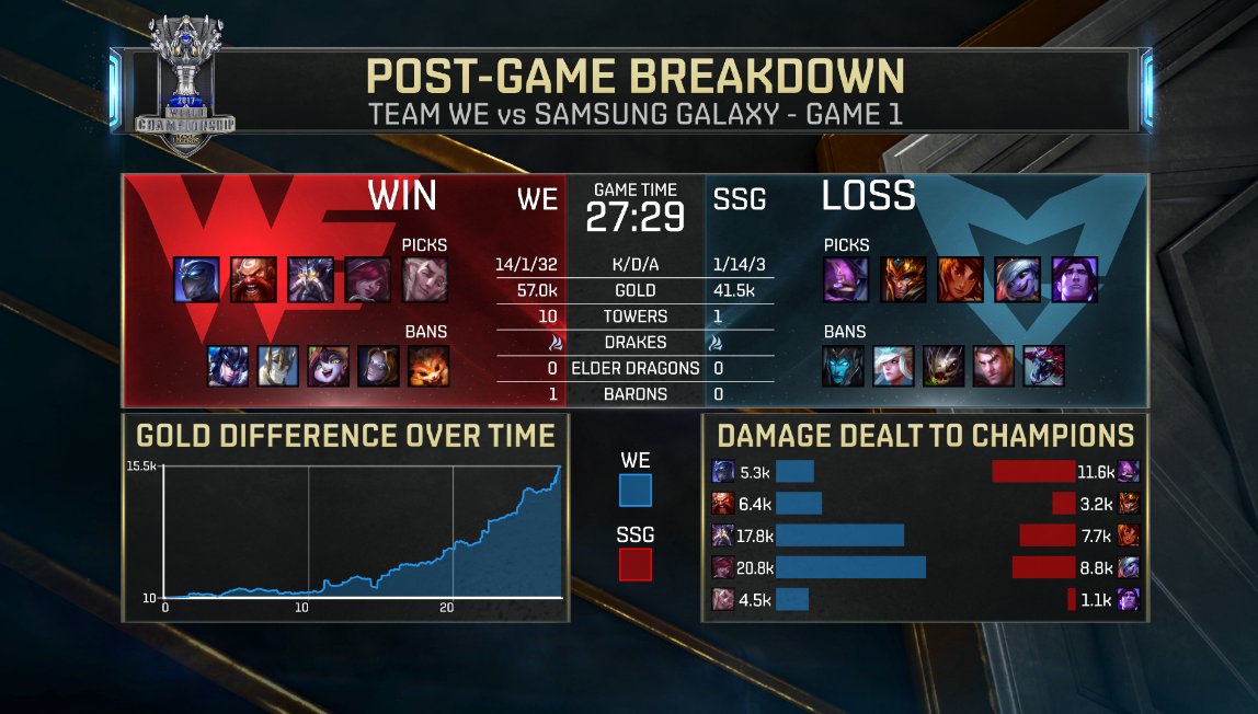 Ce matin, le second duel Corée Chine voyait s’opposer Team WE face aux Samsung Galaxy. Les deux équipes, une nouvelle fois aux styles de jeu opposés, semblaient proposer au duel de la veille avec les même forces et faiblesses. Il n’en a rien été, puisque SSG ne s’est retrouvé réellement inquiété que sur la première partie, marquée par de lourdes erreurs dans les 10-15 premières minutes de jeu.