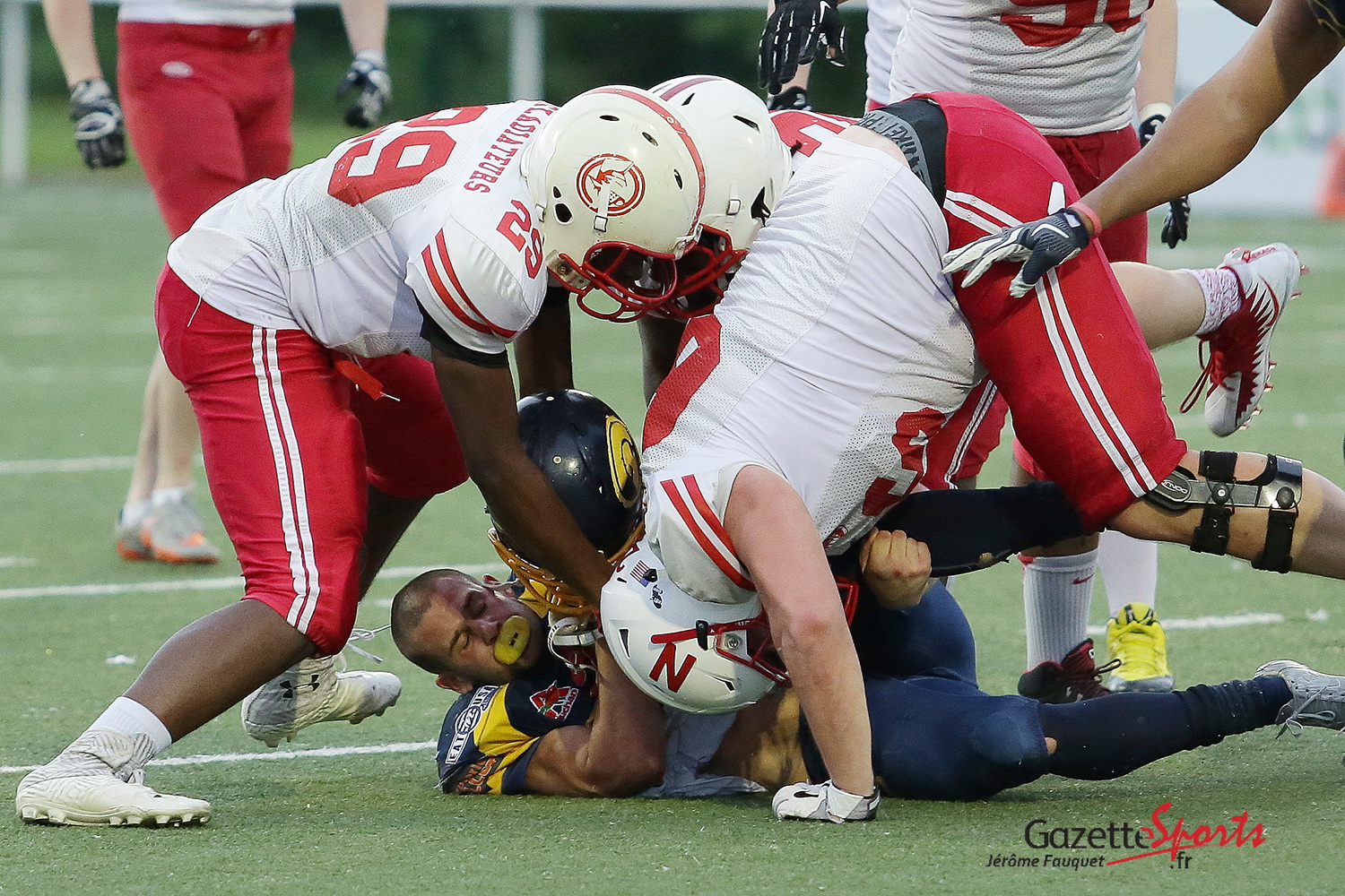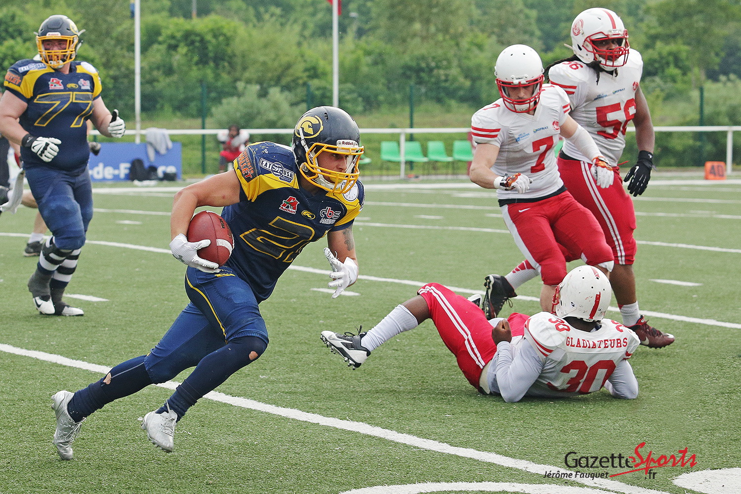 Ce samedi se jouait la demi-finale des playoffs de football américain, un combat opposant les Spartiates d’Amiens face aux Gladiateurs de Queue-en-Brie. Hier nous vous proposions un album photos sur l’ambiance du match. Aujourd’hui ce sont les actions de jeux qui sont à revivre en images.