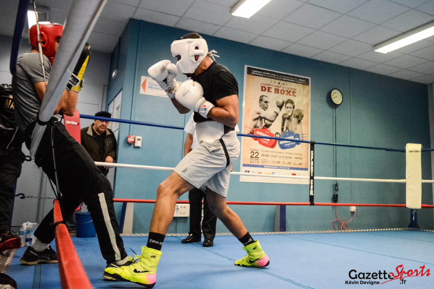 Jeudi dernier, l’Amiens Boxing Club a accueilli un Champion du Monde, Mohamed Rabii, pour un entrainement avec les élèves de Jérôme Fouache. L’occasion pour eux d’enfiler les gants avec un tel champion.