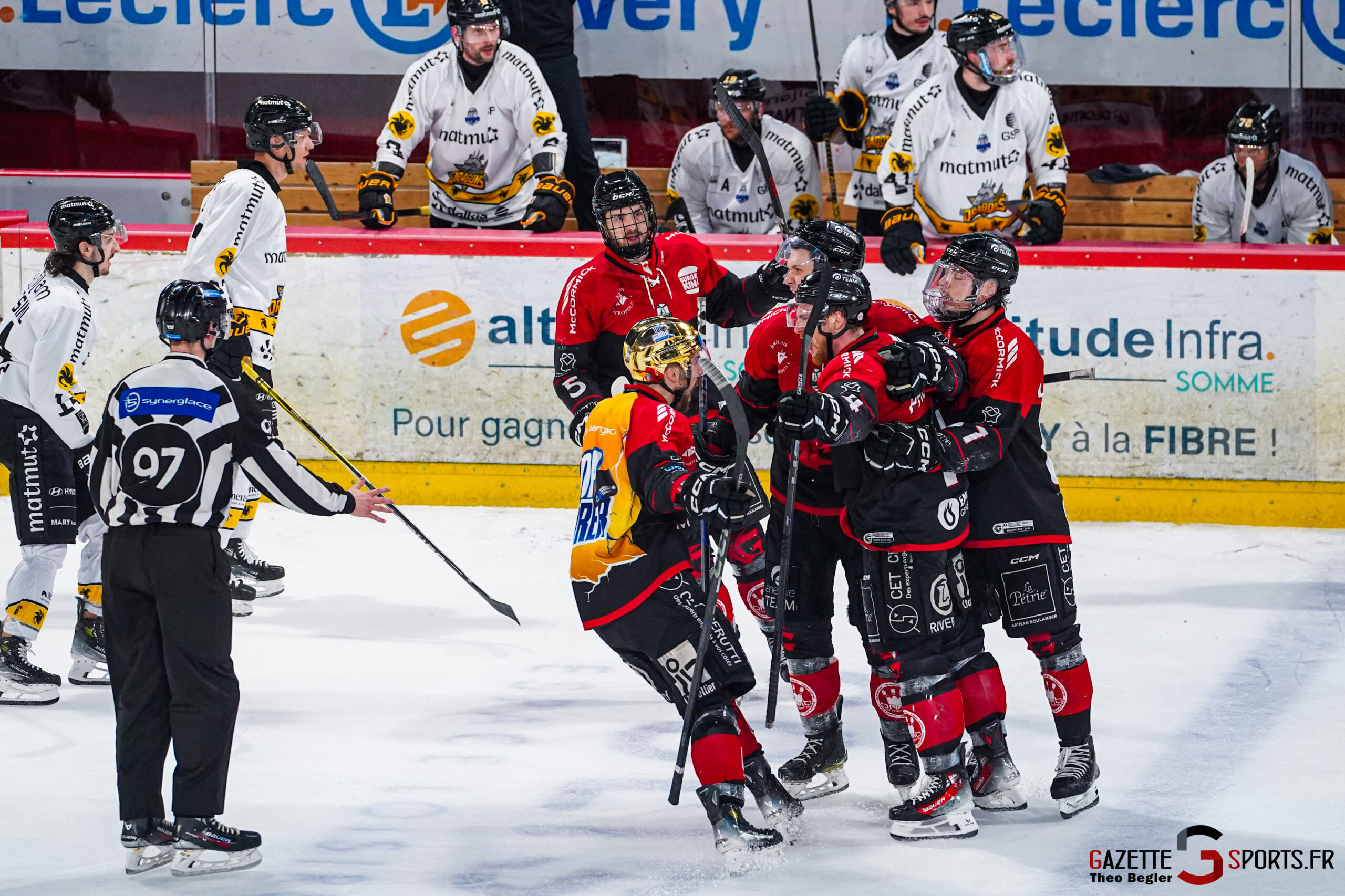 Mais les Gothiques avaient laissé passer l’orage et Tessier profitait d’une sortie de prison pour récupérer le palet, accélérer et filer servir son compatriote Phelan, seul au second poteau (1-0, 16’35). Les Dragons couraient après le score et passaient proches de l’égalisation, mais Rech, après un bon relais avec Perret, trouvait le montant droit de Kozun. Un brin de réussite pour les Gothiques d’Amiens qui exploitaient les espaces dans le dos de la défense normande, à l’image de la passe laser de Tessier pour Maïa, mais l’attaquant tricolore manquait son face-à-face avec Lackovic. Comme en première période, les Rouennais prenaient l’ascendant en supériorité numérique, les Amiénois devaient eux résister au courage pour protéger les cages de leur portier. Solides, les Gothiques tuaient deux pénalités et repartaient à l’attaque, et Larinmaa manquait de peu le cadre, tandis que Magovac, sur le bon service de Matima en contre-attaque, obligeait le portier slovaque des Dragons à s’employer. Son homologue Kozun n’était pas en reste et réalisait une superbe parade de la mitaine sur le lancer puissant de Kytnar.
