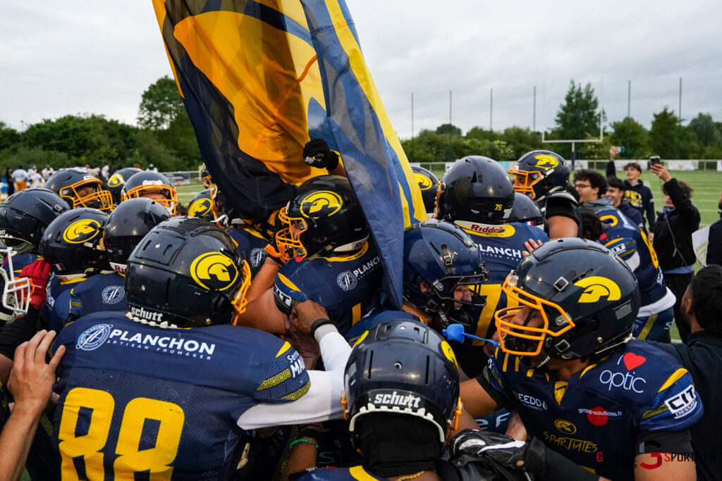 Les Spartiates d’Amiens disputaient leur demi-finale de conférence face aux Myrmidons de Savigny-le-Temple. Sur le papier, la formation amiénoise était favorite, pourtant elle a dû s’employer pour se défaire de leur adversaire sur le score de 14-7 et accéder à la finale.